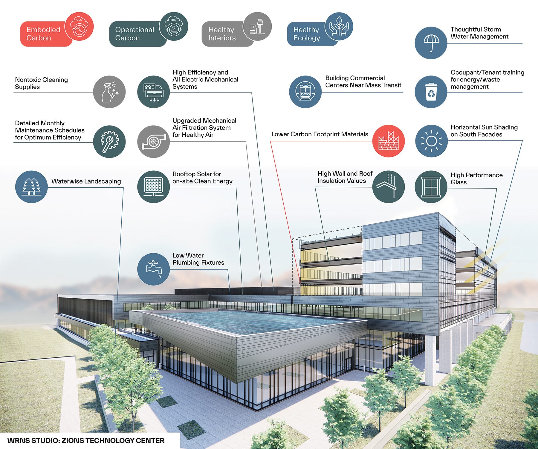 At our Baltic Pointe mass timber office building in Draper, Utah, we replaced steel and concrete framing — materials that emit an enormous amount of carbon, with sustainably forested wood.
